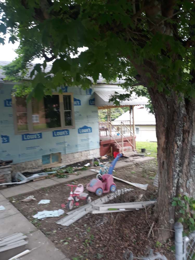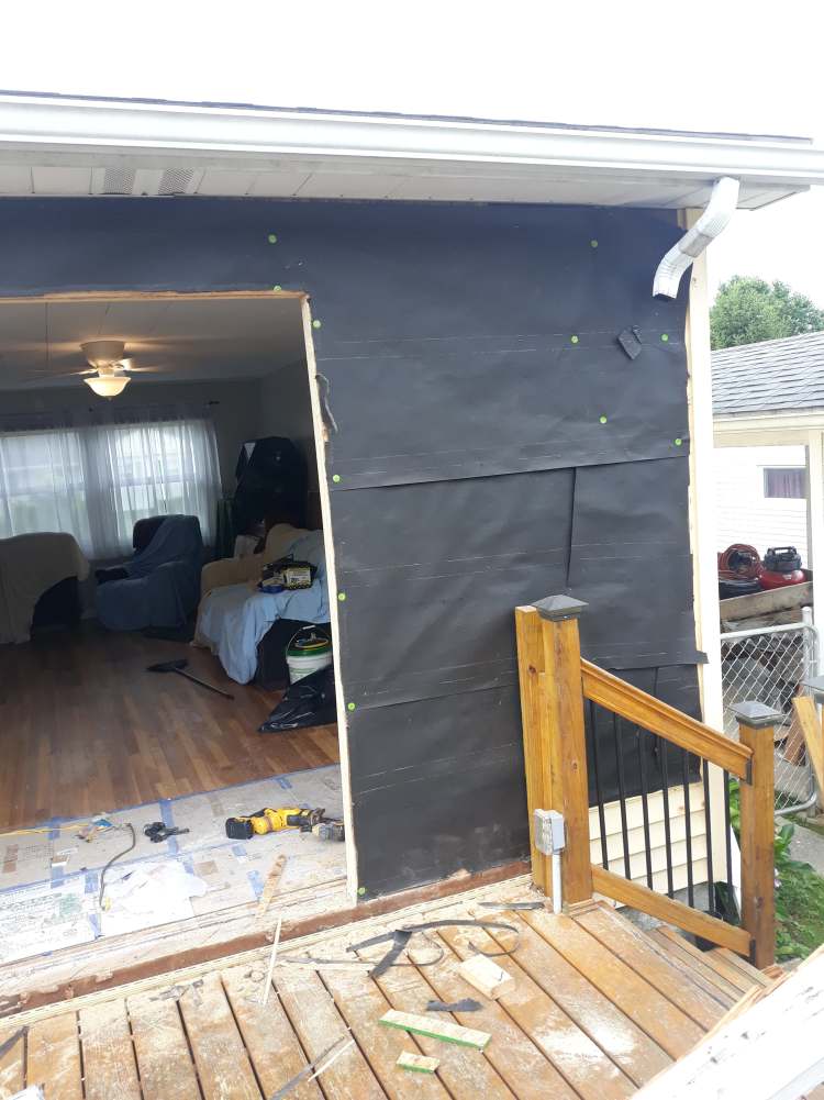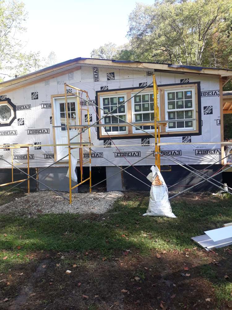 We removed the siding in order to address what was underneath the outer walls of this old house. After taking care of any needed repairs, we applied the house wrap and installed the new framing and siding. Here are some pictures we took throughout two of our projects.